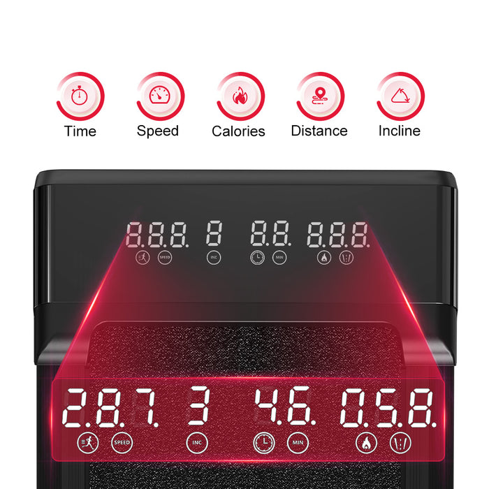 - LED Display: Time, Speed, Calories, Distance, Incline